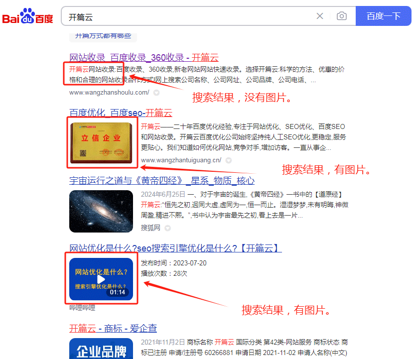 百度搜索網站出現圖片和沒出現圖片 圖1