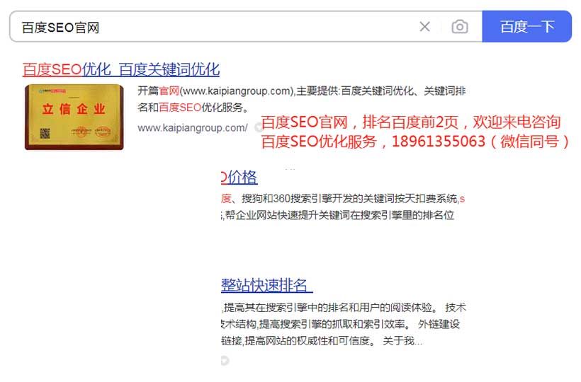 百度SEO優化排名百度前2頁,如果您有網站需要百度SEO優化,歡迎聯系我們