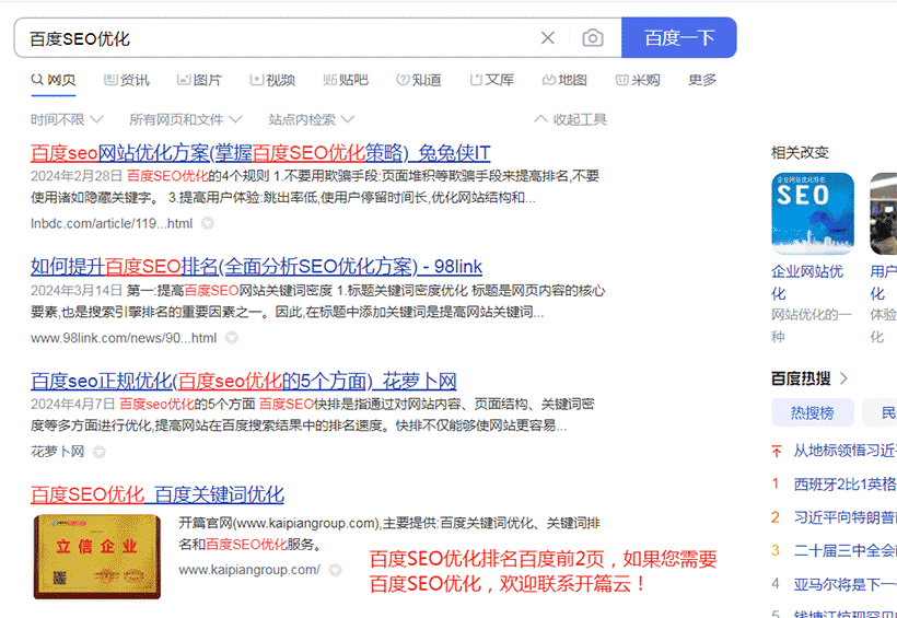 百度SEO優化,百度SEO官網,關鍵詞整站優化等關鍵詞排名百度前2頁