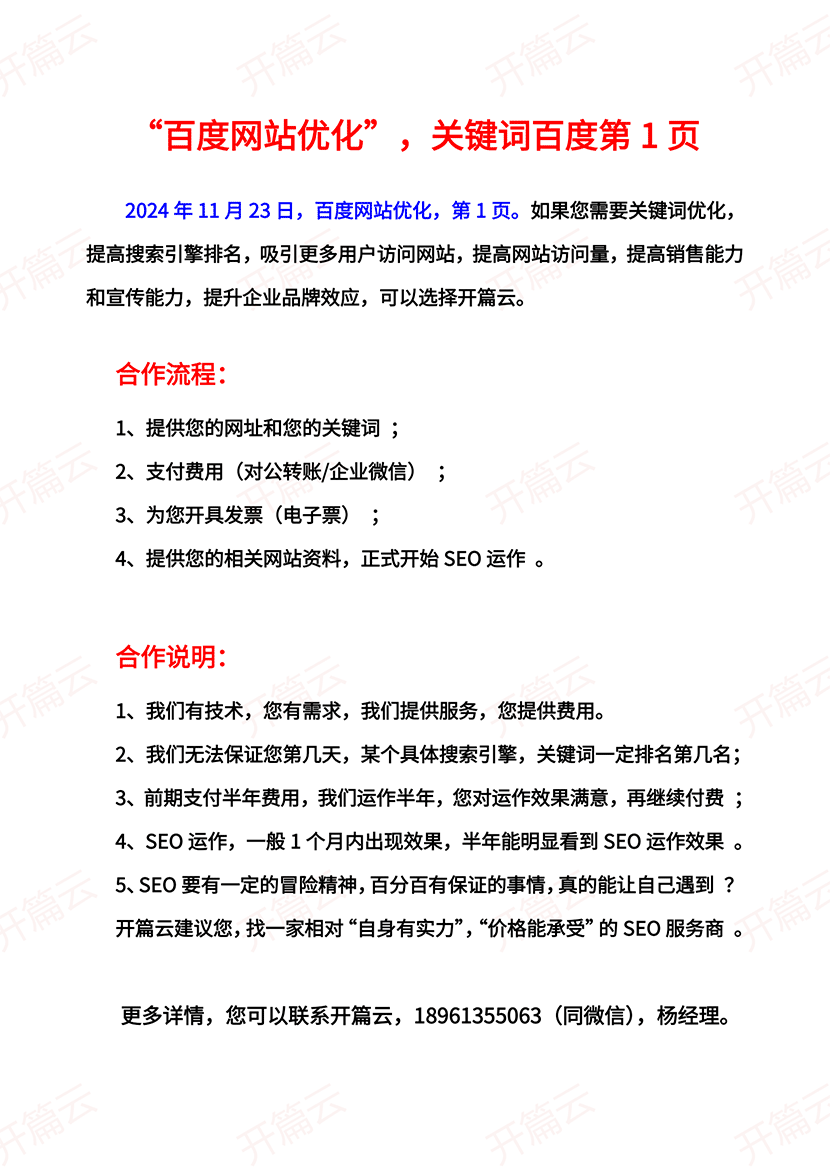 2024年11月23日,今日開篇云SEO排名,百度優化公司第一頁
