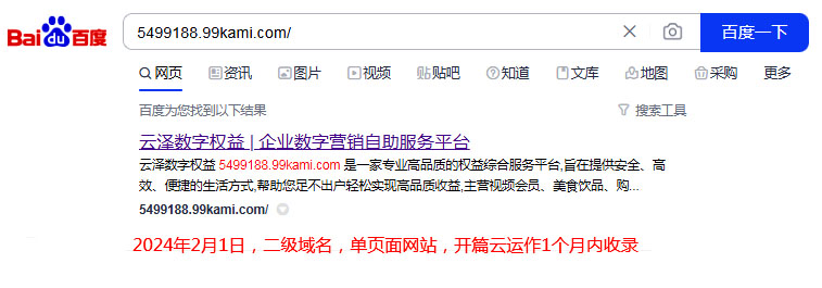 2月1日,二級域名,單頁面網站運作1個月內收錄