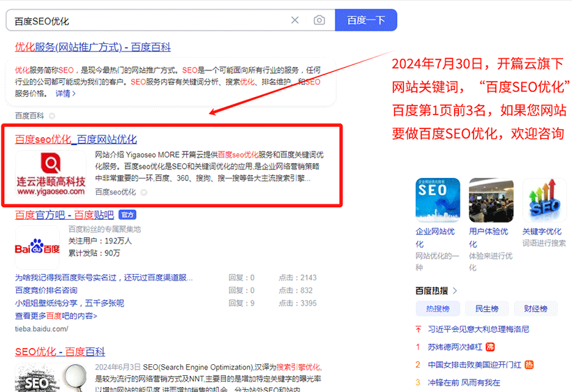 【百度優化】【百度SEO優化】排名百度第1頁前3名