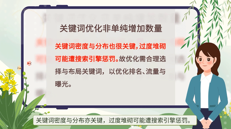 關(guān)鍵詞密度與分布也很關(guān)鍵,過度堆砌關(guān)鍵詞可能遭搜索引擎懲罰導致降權(quán)或者K站。故優(yōu)化需合理選擇與布局關(guān)鍵詞,以優(yōu)化排名、流量與曝光。