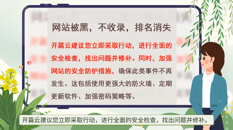 網(wǎng)站不收錄和網(wǎng)站排名消失的問題,可能涉及到搜索引擎優(yōu)化的策略調(diào)整。我們需要重新審視網(wǎng)站的SEO策略,看看是否存在不當(dāng)?shù)膬?yōu)化手段,或者是否有改進(jìn)的空間。同時(shí),加強(qiáng)網(wǎng)站的內(nèi)容建設(shè),提供高質(zhì)量、有價(jià)值的內(nèi)容,以吸引用戶和搜索引擎的注意。網(wǎng)站被黑,開篇云建議您立即采取行動(dòng),進(jìn)行全面的安全檢查,找出問題并修補(bǔ)。同時(shí),加強(qiáng)網(wǎng)站的安全防護(hù)措施,確保此類事件不再發(fā)生。這包括使用更強(qiáng)大的防火墻、定期更新軟件、加強(qiáng)密碼策略等。