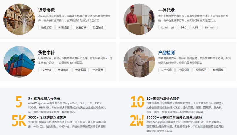 大陸之翼海外倉(cāng)(AtlasWings)于2016年成立,坐落于美國(guó)波特蘭,占地面積8000 m2。主要服務(wù)于來(lái)自Amazon、AliExpress、Ebay、Wish等國(guó)際知名電商平臺(tái)的跨境電商賣(mài)家,致力于為其提供貼標(biāo)換標(biāo)、一件代發(fā)、倉(cāng)儲(chǔ)配送、中轉(zhuǎn)調(diào)撥、產(chǎn)品檢測(cè)等海外倉(cāng)服務(wù)及本土清關(guān)、頭程物流、尾程派送、海運(yùn)拼箱/整柜、空運(yùn)加派、鐵路專線直郵小包等海外物流服務(wù)。