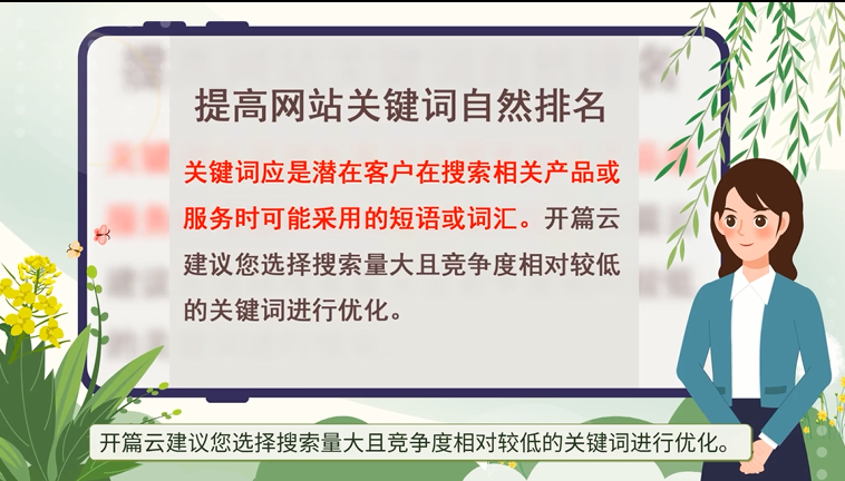 關鍵詞應是潛在客戶在搜索相關產品或服務時可能采用的短語或詞匯。開篇云建議您選擇搜索量大且競爭度相對較低的關鍵詞進行優化。