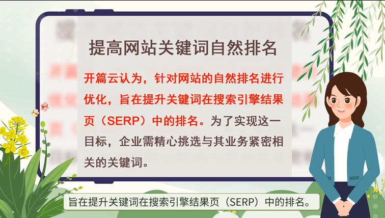 開篇云認為,針對網站的自然排名進行優化,旨在提升關鍵詞在搜索引擎結果頁(SERP)中的排名。為了實現這一目標,企業需精心挑選與其業務緊密相關的關鍵詞。